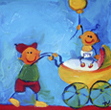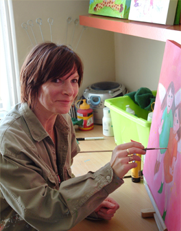 Ze is zelf ook mama van een dochter en heeft veel vriendinnen met kinderen. Ze kan zich dus helemaal inleven in de wereld van een kind en maakt zo schilderijen die daar helemaal op aansluiten.